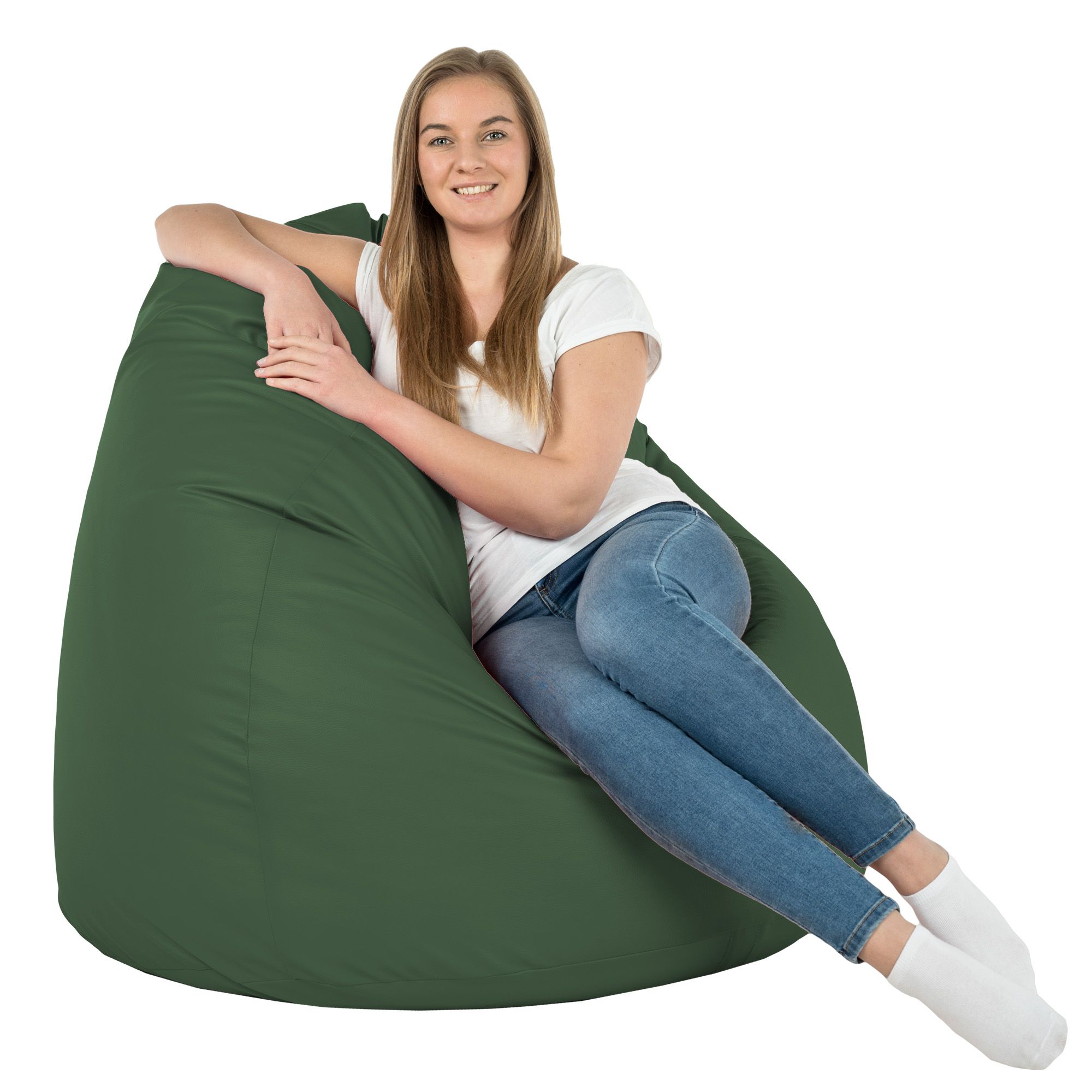 Dark green large bean bag PU leather