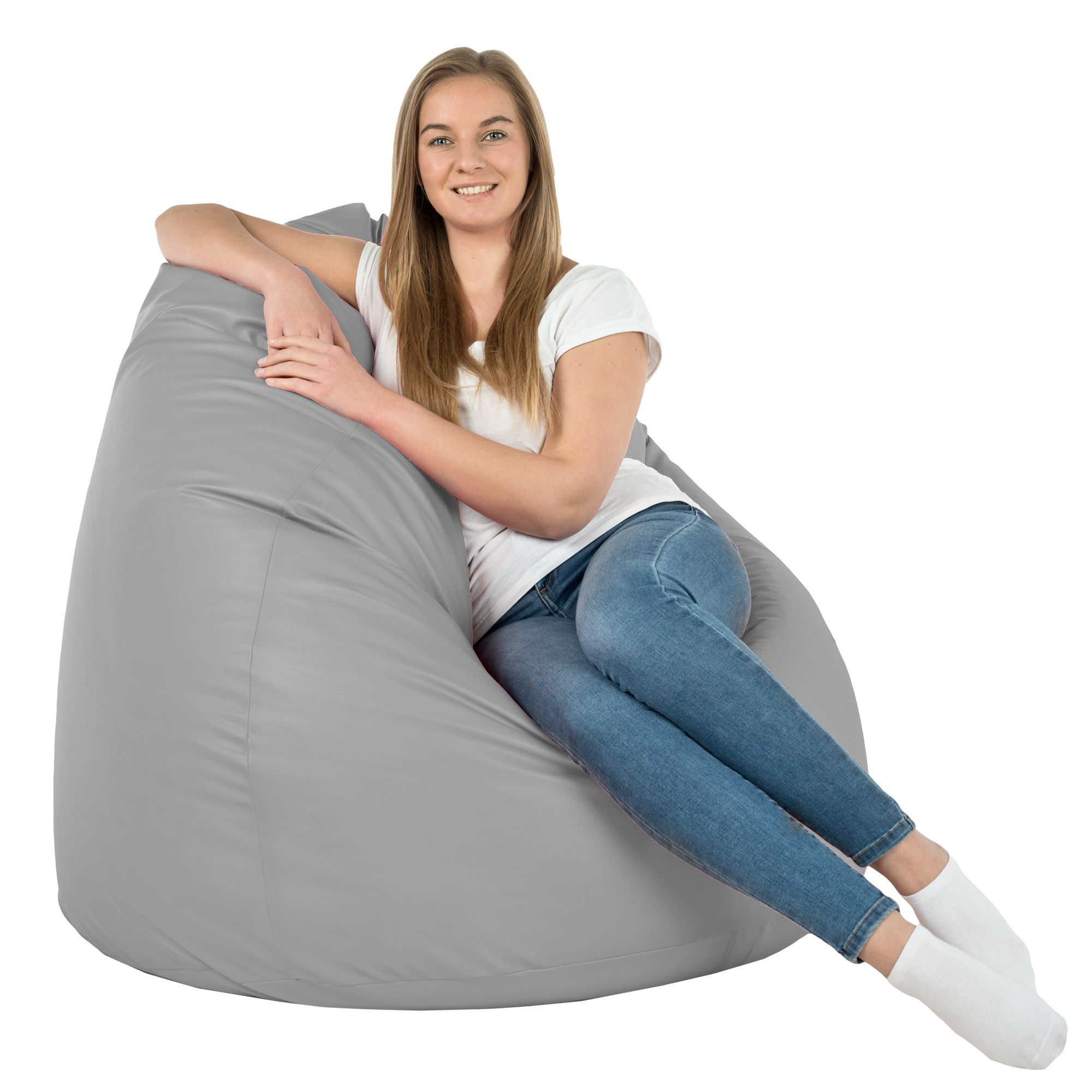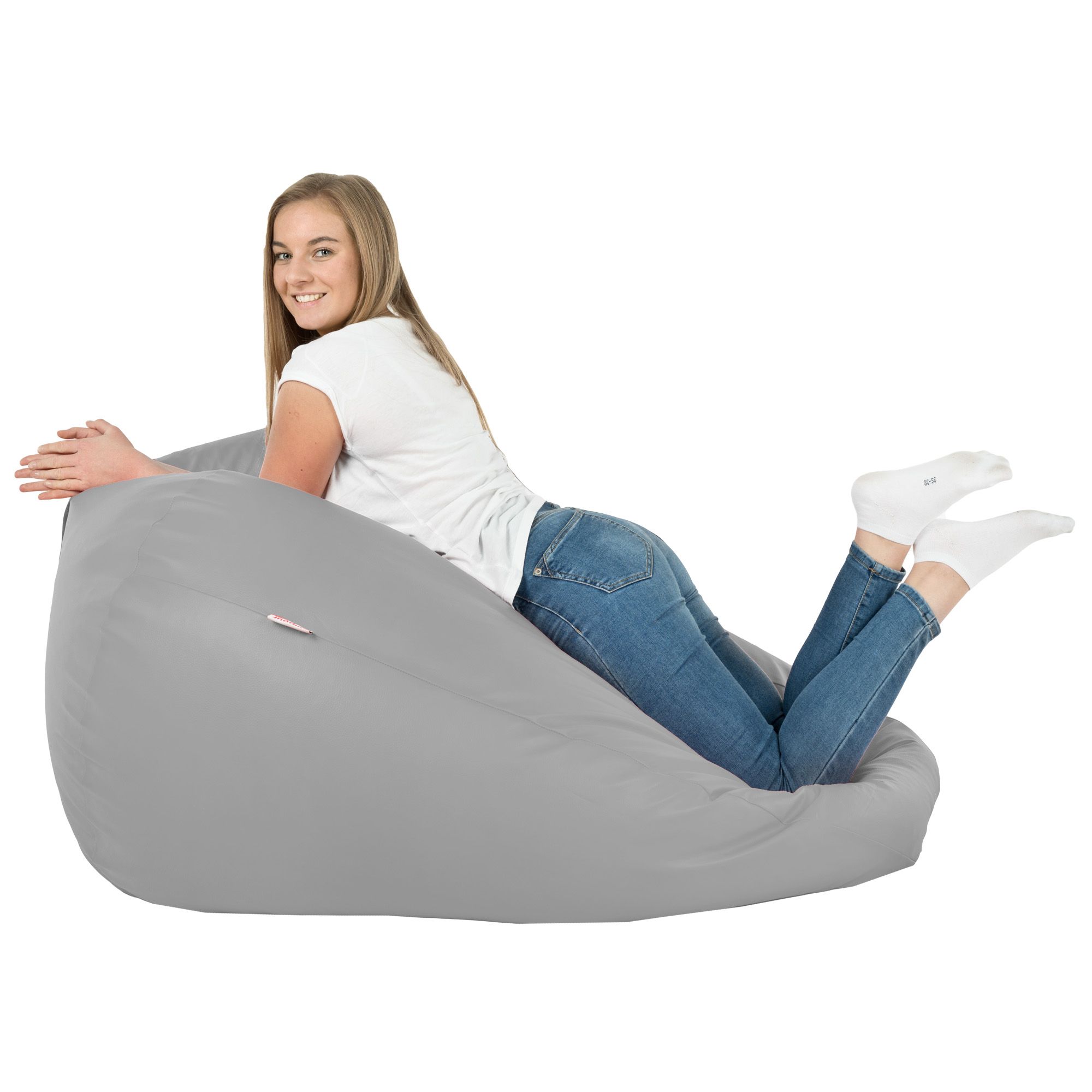 Light gray large bean bag PU leather